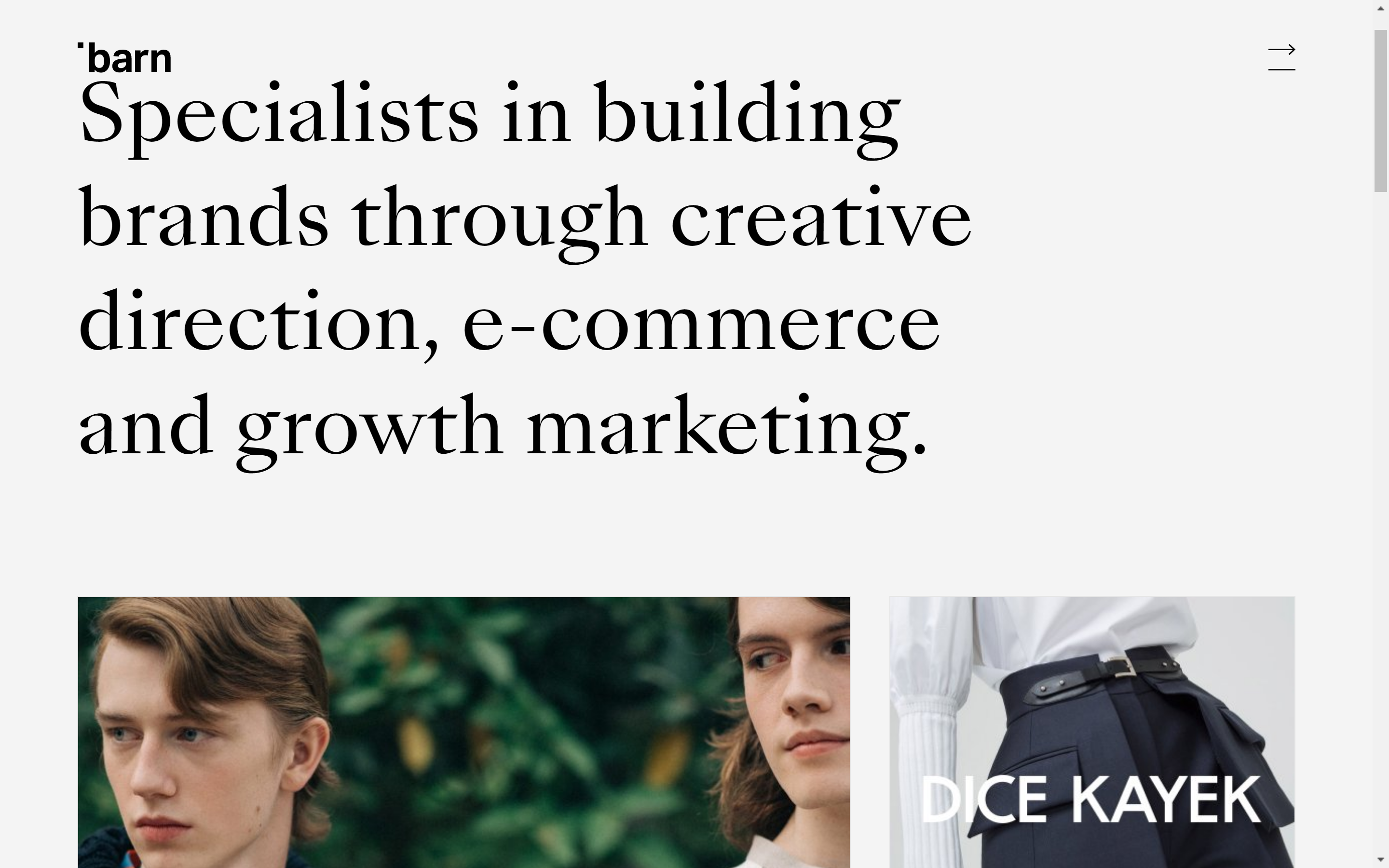 Webpage Tagline: "The Barn is a ecommerce agency that creates intelligent and compelling experiences for brands to share with their customers."