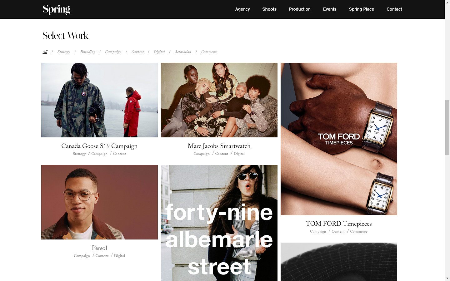 Webpage Tagline: "Spring is an innovative 360 agency creating communications for fashion, beauty, lifestyle and luxury brands.."