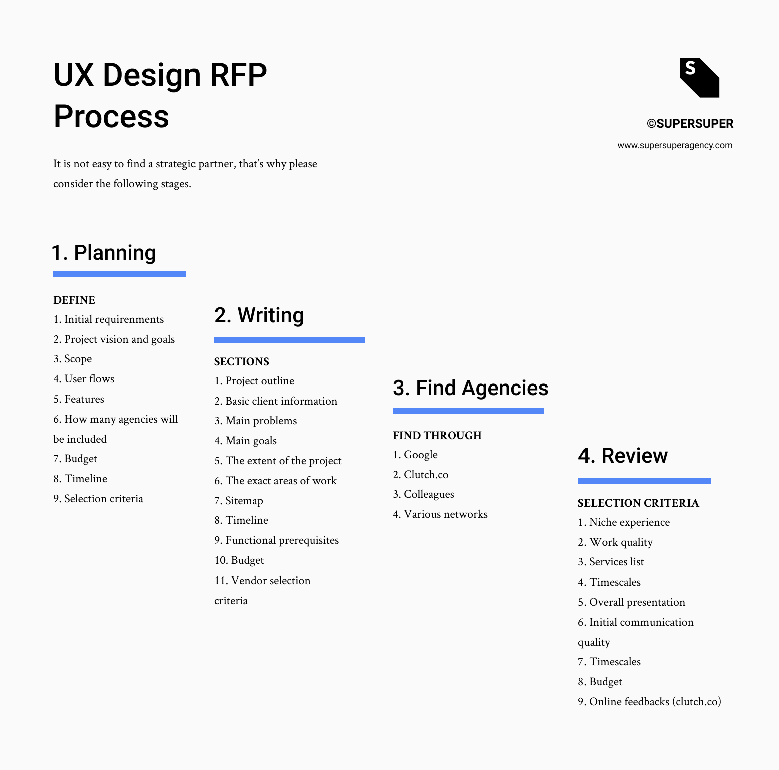 We presented the most common user experience solicitation rules as we see them from our design agency experience. We constantly receive requests for proposals for UX design and we can tell you there is a huge difference between them. Some of them really stand out in the sense of provided data and precisely defined project characteristics needed for the successful design.