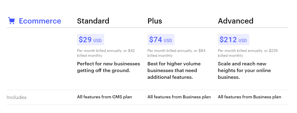 Webflow eComerce: Webflow offers three monthly plans: