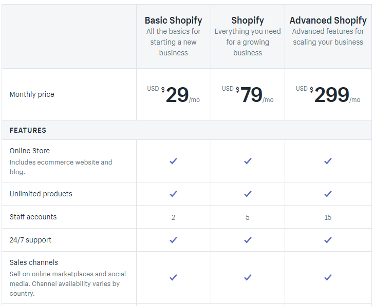 Shopify: Shopify offers five monthly plans: