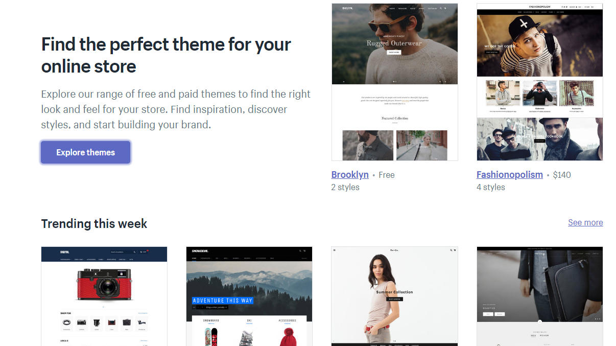 Shopify: Shopify provides 10 free templates and offers an enormous amount of templates for purchase on Shopify web store. Each of these free 10 templates offers variations in theme, which in reality means, there are more free options than specified. They look good and are also attractive when compared to paid templates. The store website is straightforward to use because of the filters. Here again, responsiveness is also very important because templates have the ability to automatically adjust themselves to fit the screen of the device on which they are viewed.
