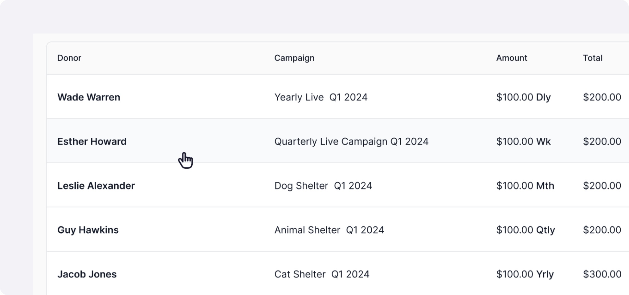- Table interactions (filters, columns)
