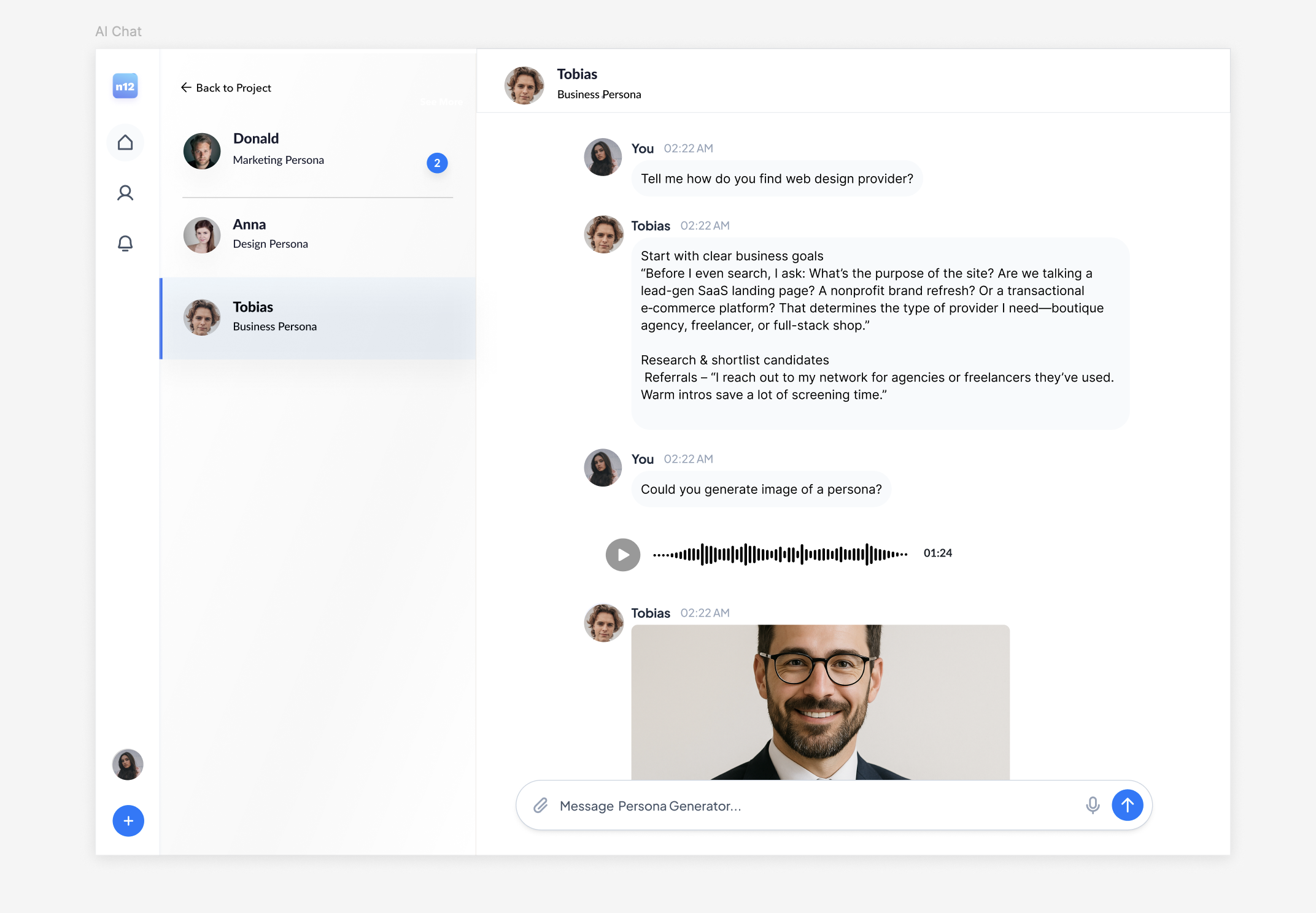 Persona Builder: Users can define personality traits, roles, and expertise.