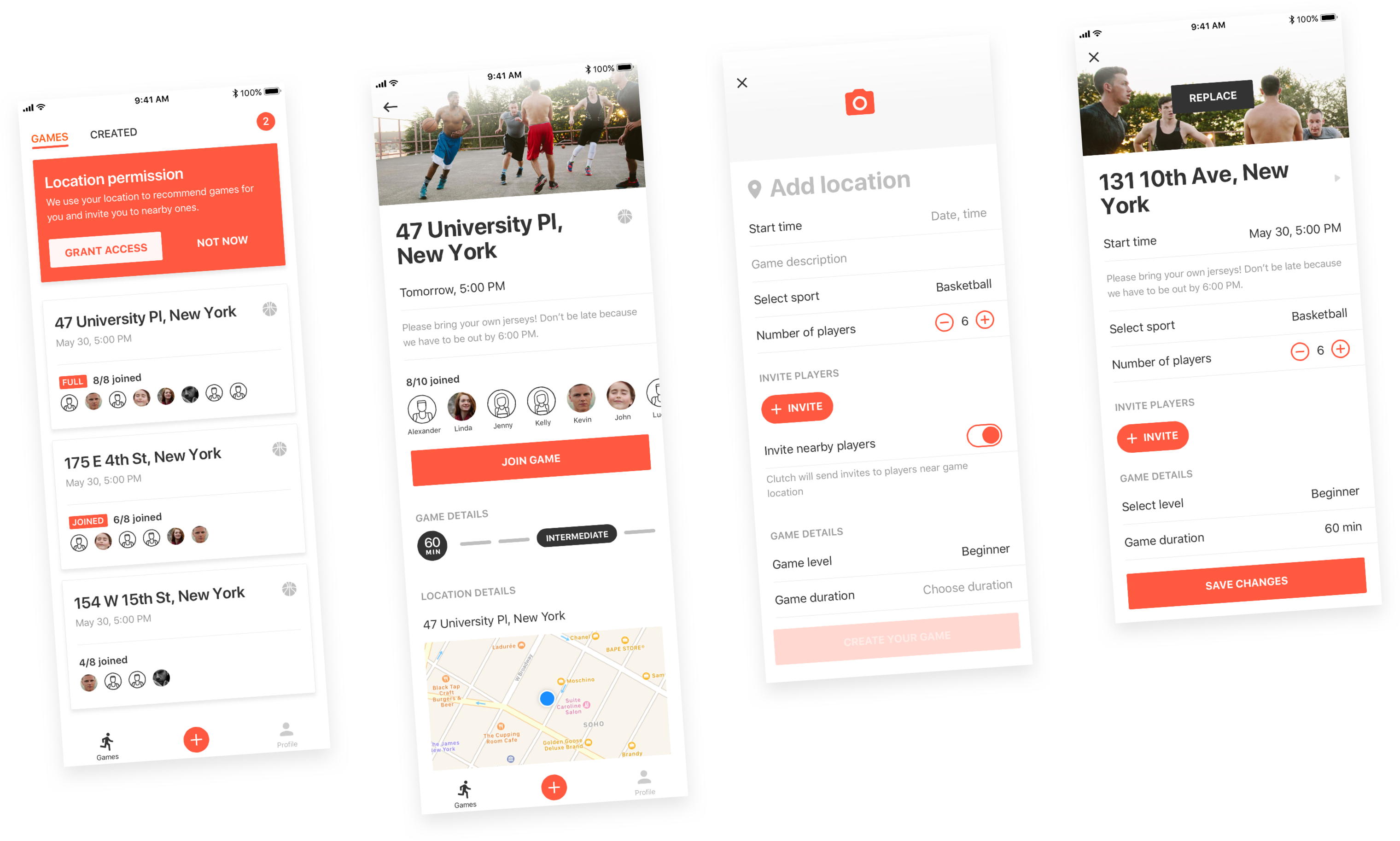 Sports platform is an app for getting together like minded athletes with similar skill levels. You can create your games or join others created by users. When onboarding a user selects his athleticism level and gets matched with games based on his level and location.