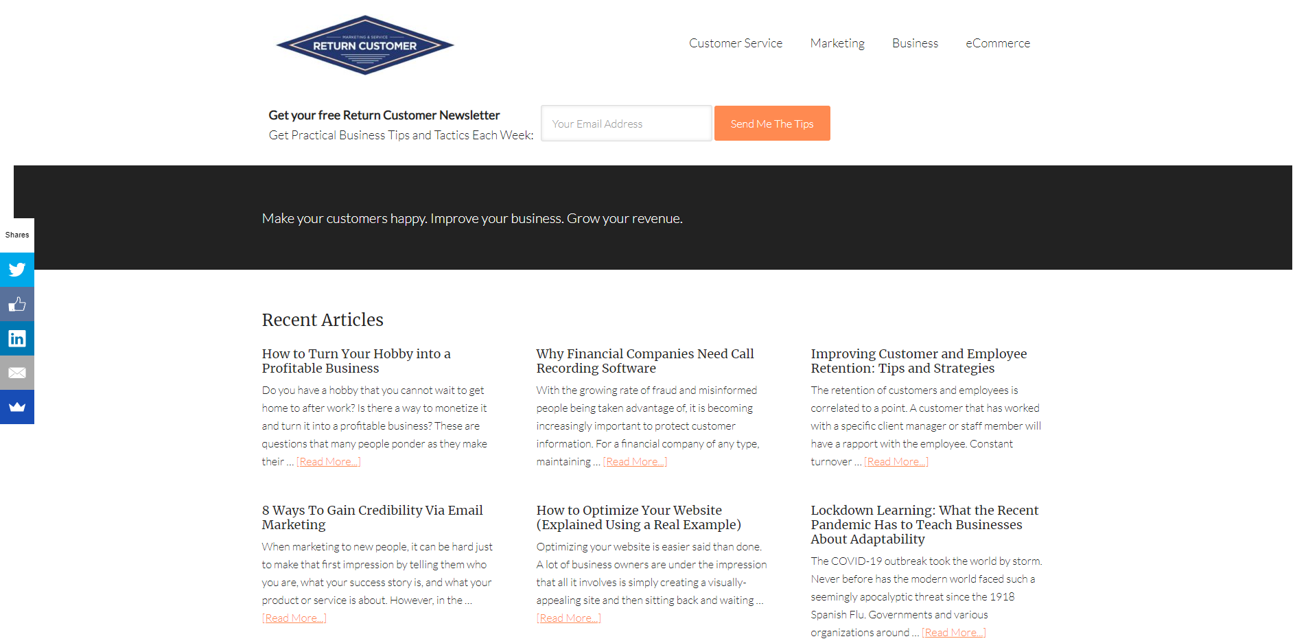 Return Customer is an online source of examples from everyday life and the news of how to attract and retain valuable customers.