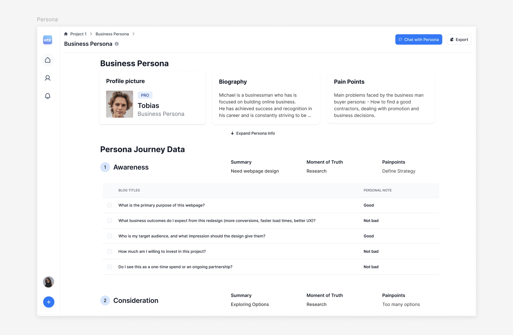 Chat Interface – for interacting with personas and retrieving insights.
